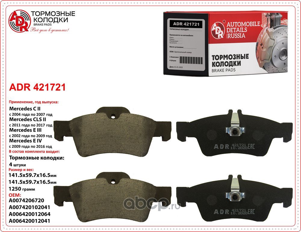 | ADR | ADR421721 | Колодки тормозные задние MERCEDES C II, CL, CLS, E, S, SL, OEM A0034205120 | ||