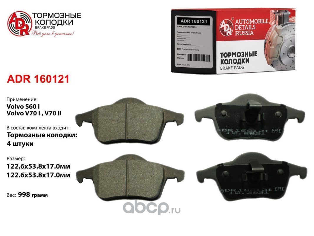 | ADR | ADR160121 | Колодки тормозные задние VOLVO S60, S70, S80, V70, XC70 OEM 30648382 | ||