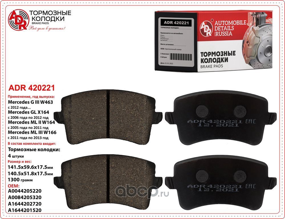 | ADR | ADR420221 | Колодки тормозные задние MERCEDES G III, GL, ML II, III, R OEM A1644201520 | ||