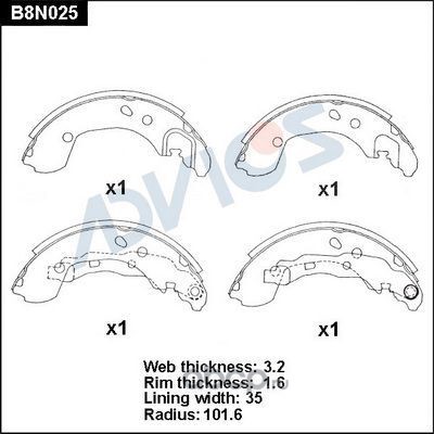 | ADVICS | B8N025 | Колодки тормозные барабанные | ||