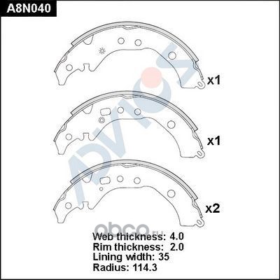 | ADVICS | A8N040 | Колодки тормозные барабанные | ||