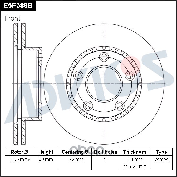 | ADVICS | E6F388B | Диск тормозной пер. | ||