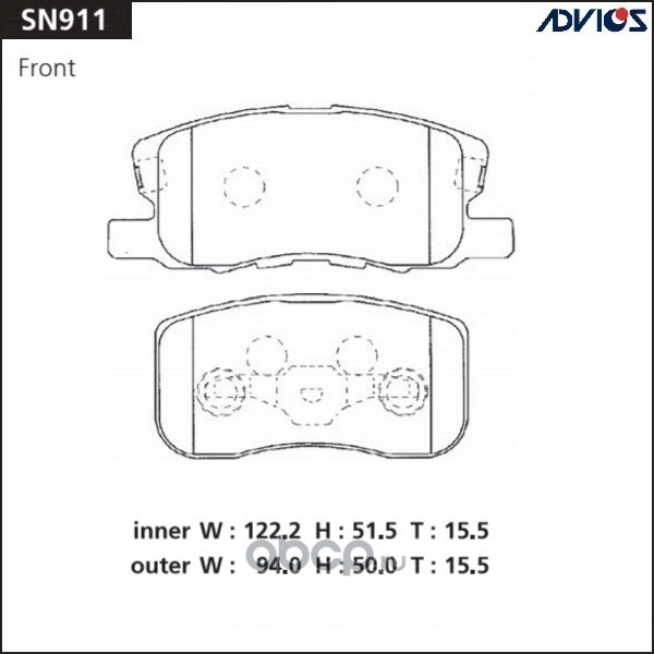 | ADVICS | SN911 | Дисковые тормозные колодки | ||