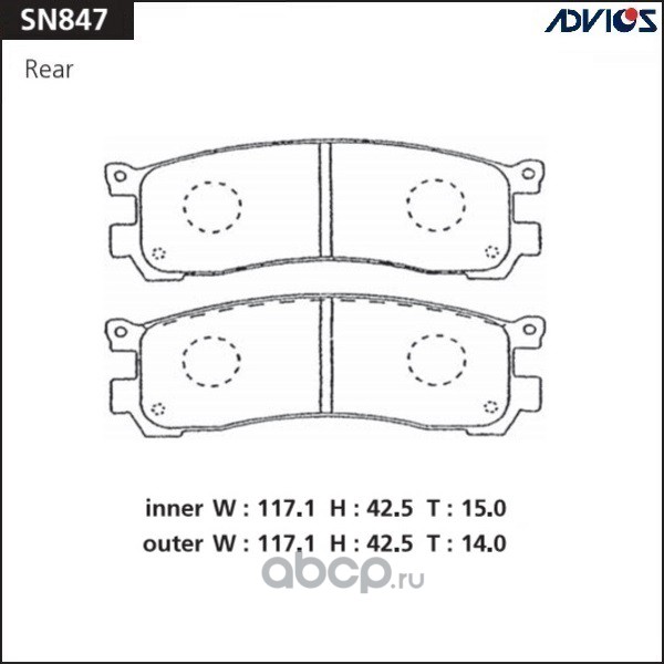 | ADVICS | SN847 | Дисковые тормозные колодки | ||