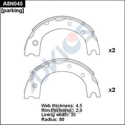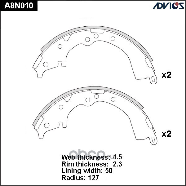 | ADVICS | A8N045 | Колодки тормозные барабанные | ||
