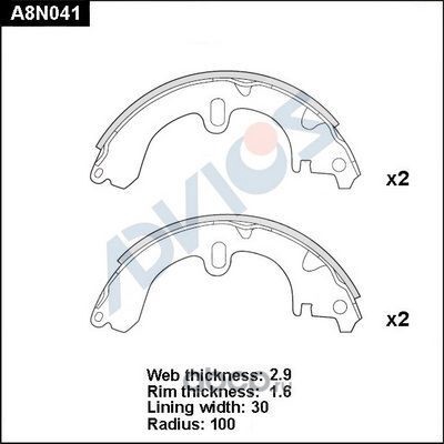 | ADVICS | A8N030 | Колодки тормозные барабанные | ||