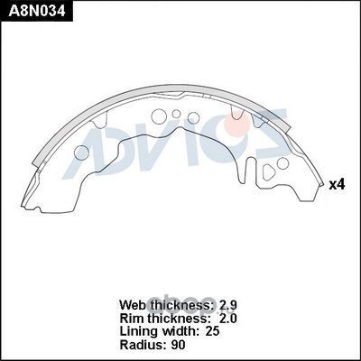 | ADVICS | A8N034 | Колодки тормозные барабанные | ||