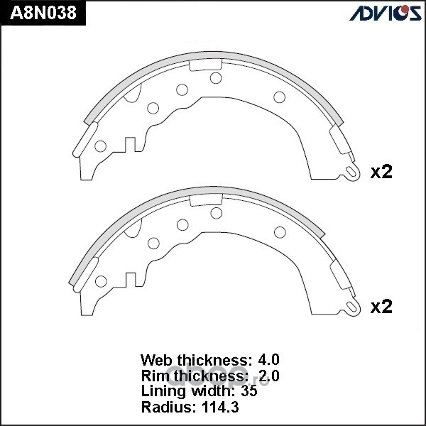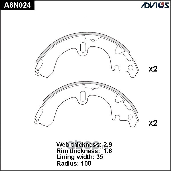 | ADVICS | A8N035 | Колодки тормозные барабанные | ||