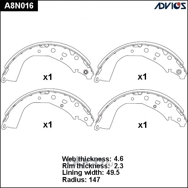 | ADVICS | A8N016 | Колодки тормозные барабанные | ||