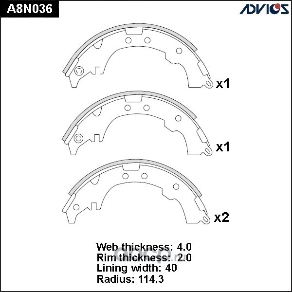 | ADVICS | A8N036 | Колодки тормозные барабанные | ||