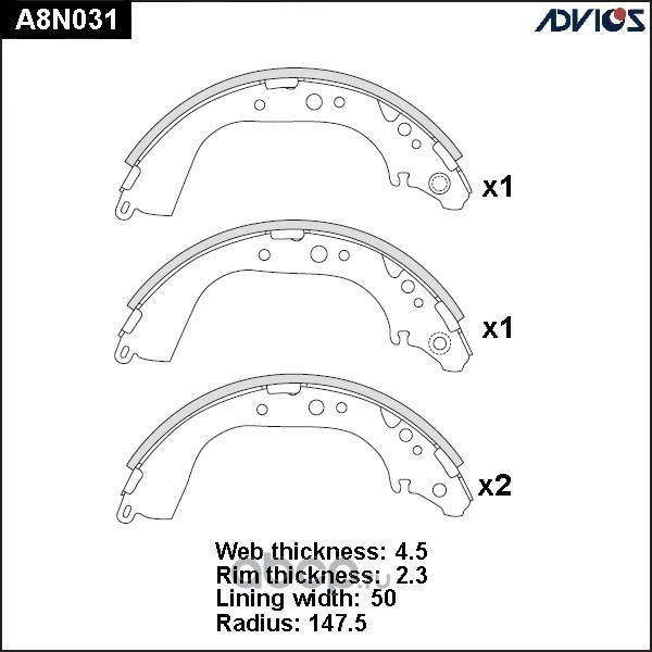 | ADVICS | A8N031 | Колодки тормозные барабанные | ||
