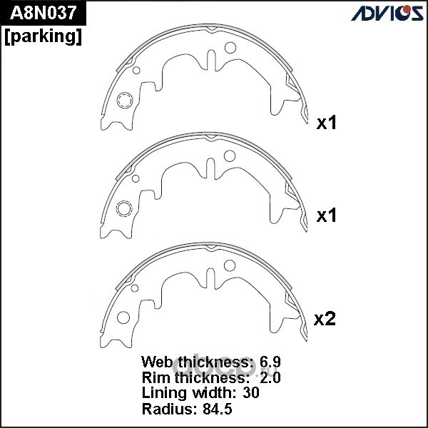 | ADVICS | A8N037 | Колодки тормозные барабанные | ||