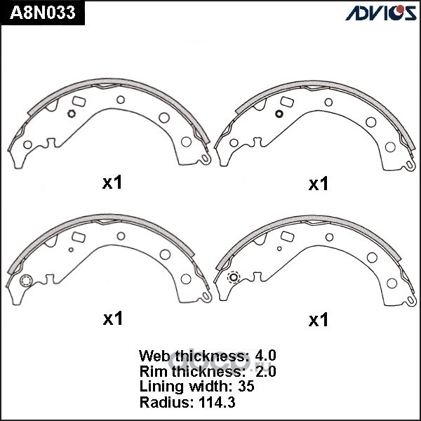 | ADVICS | A8N033 | Колодки тормозные барабанные | ||