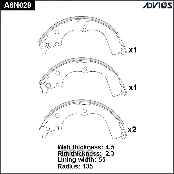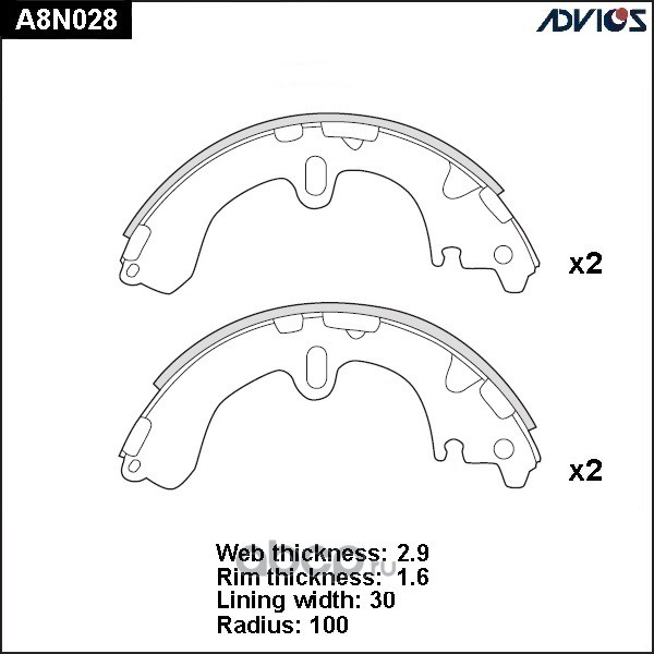| ADVICS | A8N029 | Колодки тормозные барабанные | ||