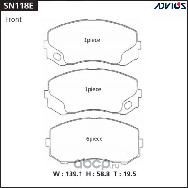 | ADVICS | SN118E | Дисковые тормозные колодки |