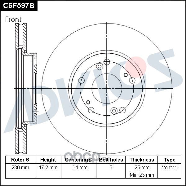 | ADVICS | C6F597B | Диск тормозной пер. | ||
