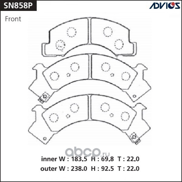 | ADVICS | SN858P | Дисковые тормозные колодки | ||