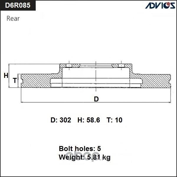 | ADVICS | D6R085B | Диск тормозной зад. | ||