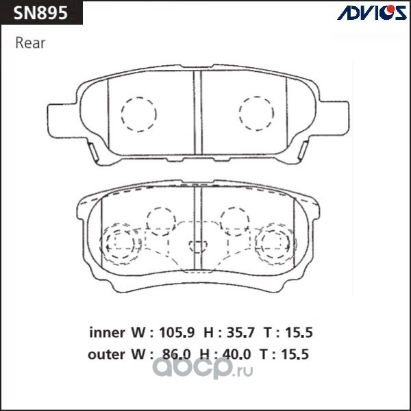 | ADVICS | SN895 | Дисковые тормозные колодки | ||