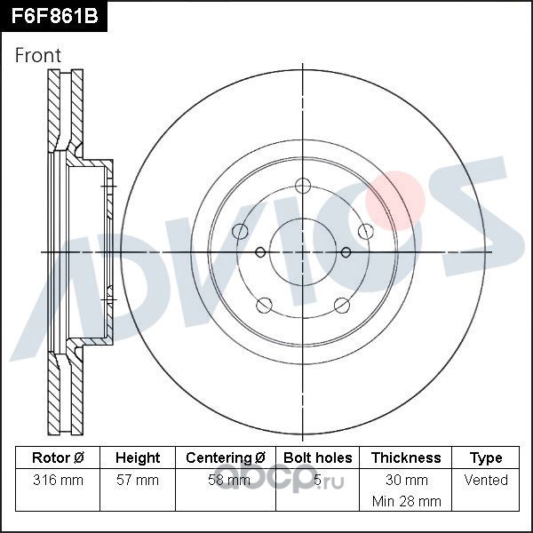 | ADVICS | F6F861B | Диск тормозной пер. | ||