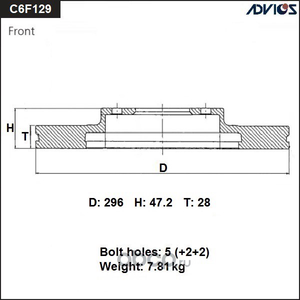 | ADVICS | C6F129B | Диск тормозной пер. | ||