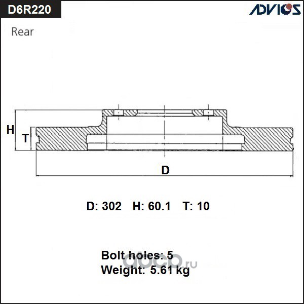 | ADVICS | D6R220B | Диск тормозной зад. | ||