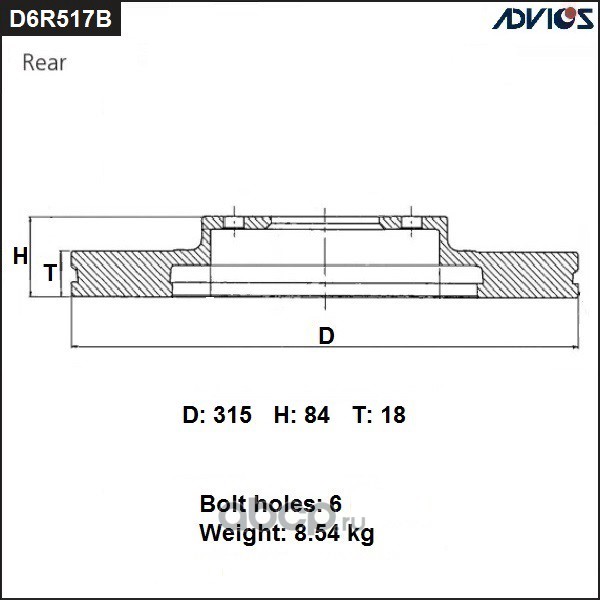 | ADVICS | D6R517B | Диск тормозной зад. | ||
