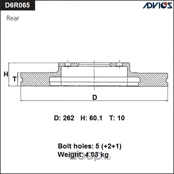 | ADVICS | D6R065B | Диск тормозной зад. | ||