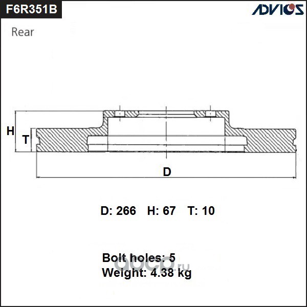 | ADVICS | F6R351B | Диск тормозной зад. | ||