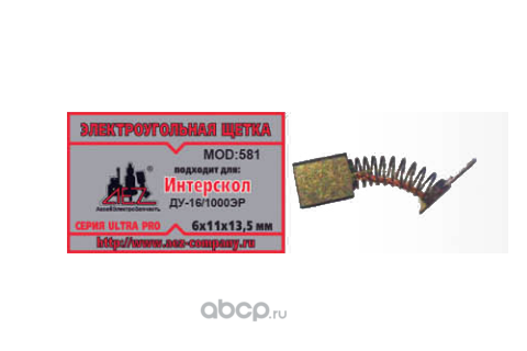 | AEZ | 581 | Электроугольная щетка 6х11х13,5 Поводок пружина квадратный пятак подходит для Интерскол ДУ-16/1000ЭР | ||