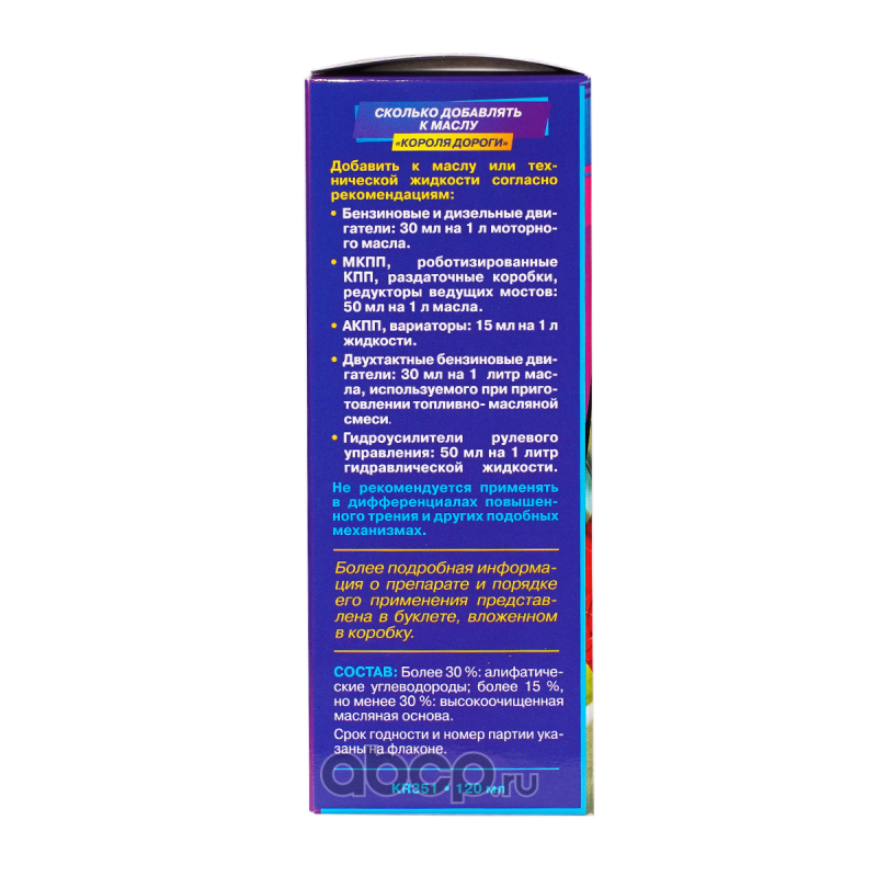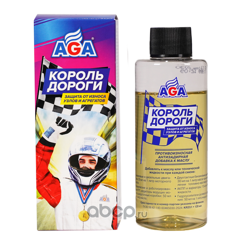 | AGA | KR351 | КОРОЛЬ ДОРОГИ. Противоизносная и антизадирная добавка к маслу, 120 мл | ||