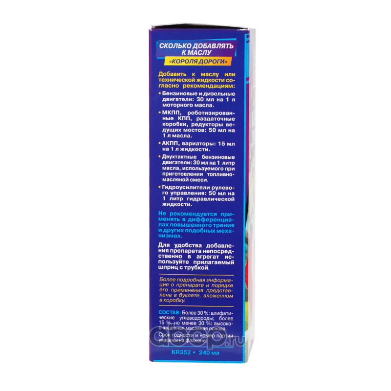 | AGA | KR352 | КОРОЛЬ ДОРОГИ. Противоизносная и антизадирная добавка к маслу, 240 мл | ||