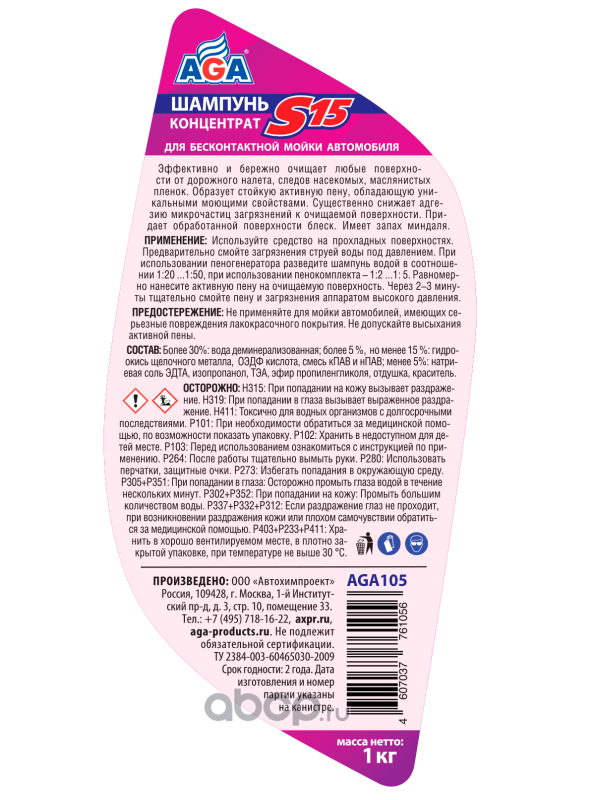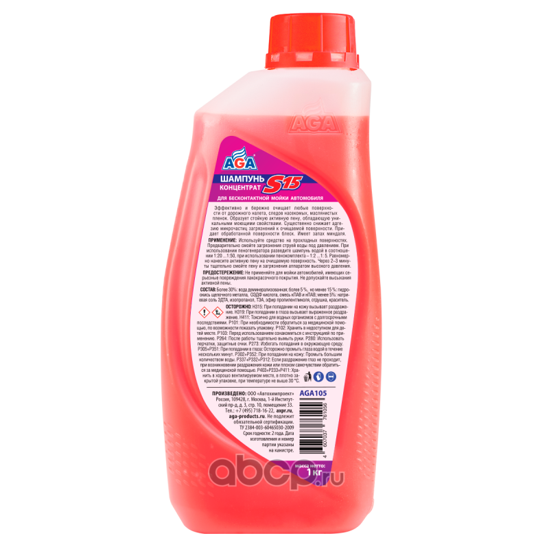| AGA | AGA105 | Шампунь для бесконтактной мойки автомобиля, концентрат | ||