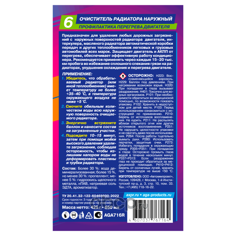 | AGA | AGA716R | Очиститель радиатора наружный R6 | ||