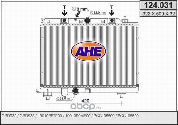 | AHE | 124031 | Радиатор, охлаждение двигателя | ||