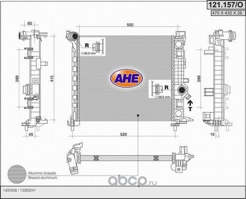 | AHE | 121157O | Радиатор, охлаждение двигателя | ||