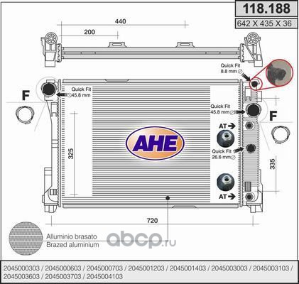 | AHE | 118188 | Радиатор, охлаждение двигателя | ||