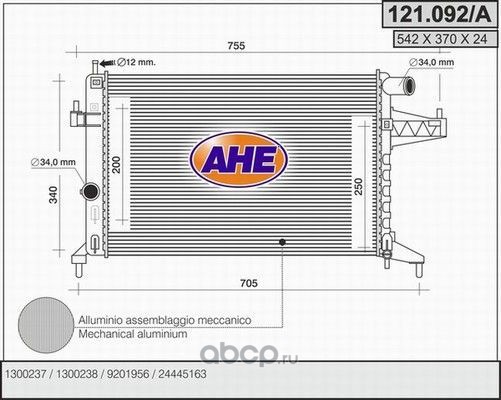 | AHE | 121092A | Радиатор, охлаждение двигателя | ||