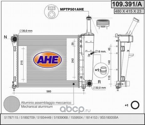 | AHE | 109391A | Радиатор, охлаждение двигателя | ||