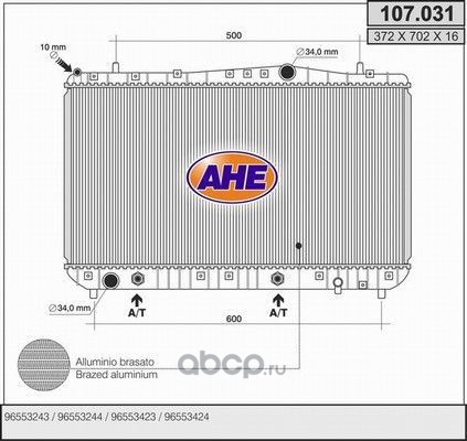 | AHE | 107031 | Радиатор, охлаждение двигателя | ||