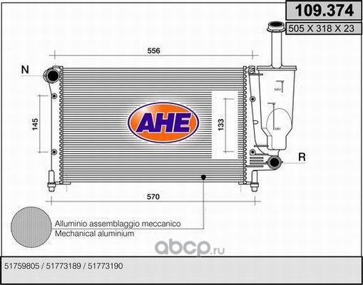 | AHE | 109374 | Радиатор, охлаждение двигателя | ||