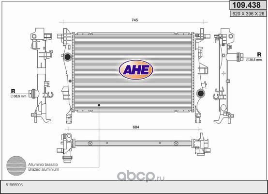 | AHE | 109438 | Радиатор, охлаждение двигателя | ||