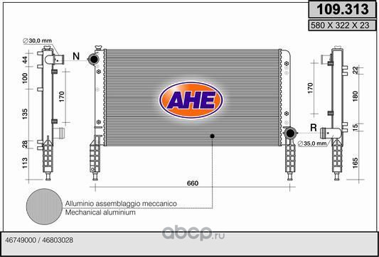 | AHE | 109313 | Радиатор, охлаждение двигателя | ||
