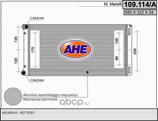 | AHE | 109114A | Радиатор, охлаждение двигателя |