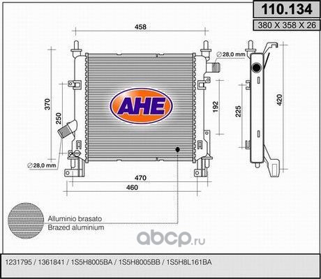 | AHE | 110134 | Радиатор, охлаждение двигателя | ||