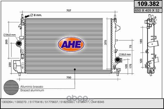 | AHE | 109382 | Радиатор, охлаждение двигателя | ||