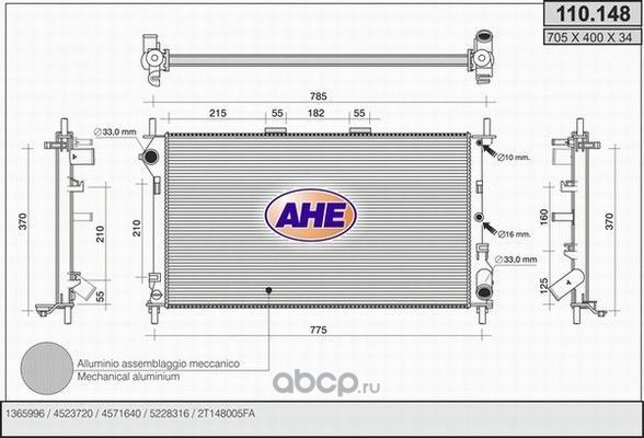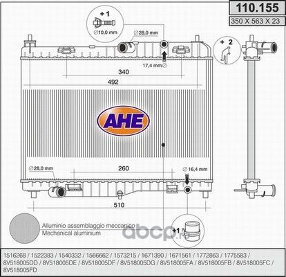 | AHE | 110155 | Радиатор, охлаждение двигателя | ||