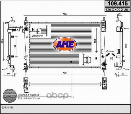 | AHE | 109415 | Радиатор, охлаждение двигателя | ||