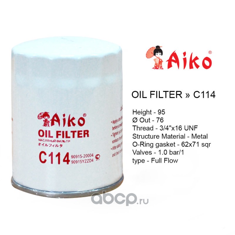 | AIKO | C114 | Фильтр масляный | ||