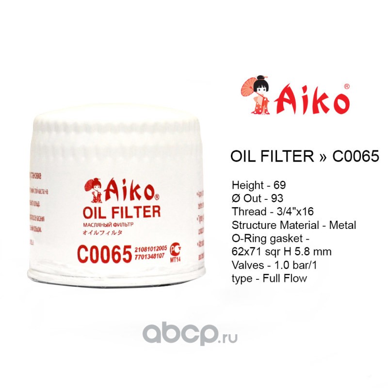 | AIKO | C0065 | Фильтр масляный | ||